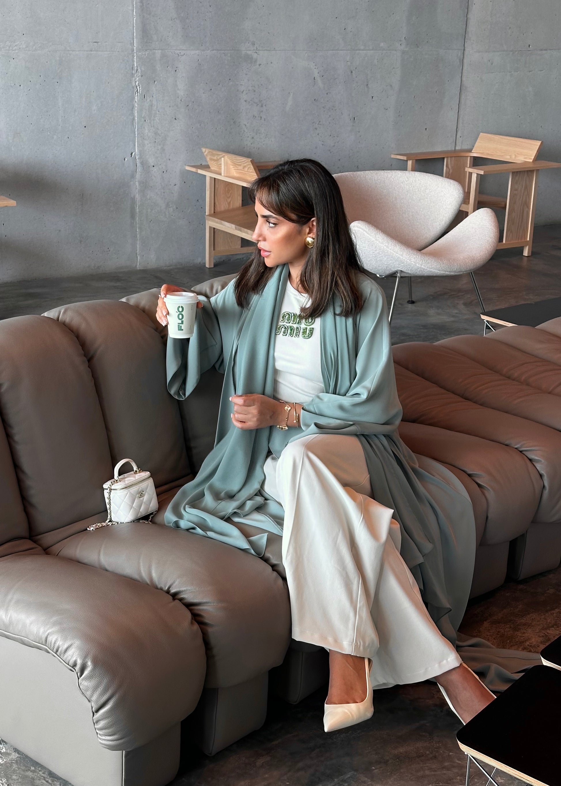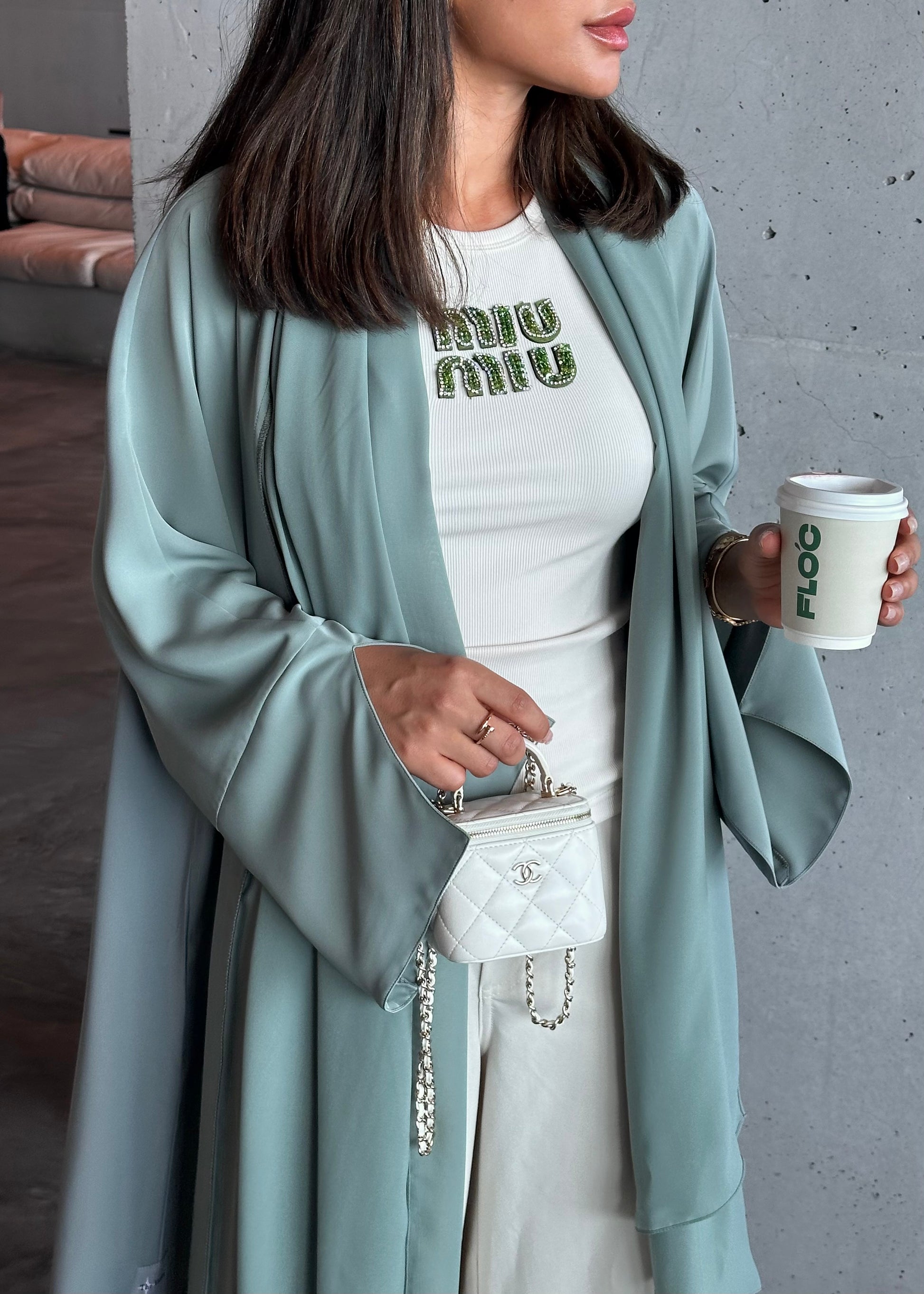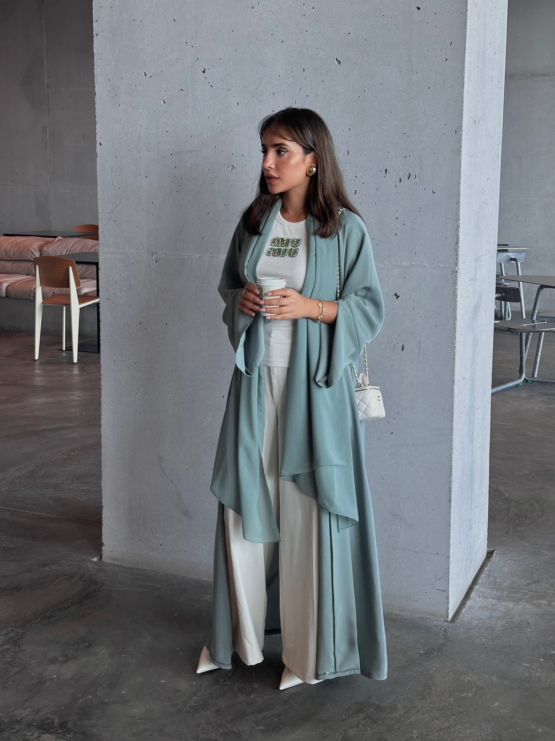 Description: This abaya is the perfect shade of green, identical to Matcha color, with no blue undertones whatsoever.