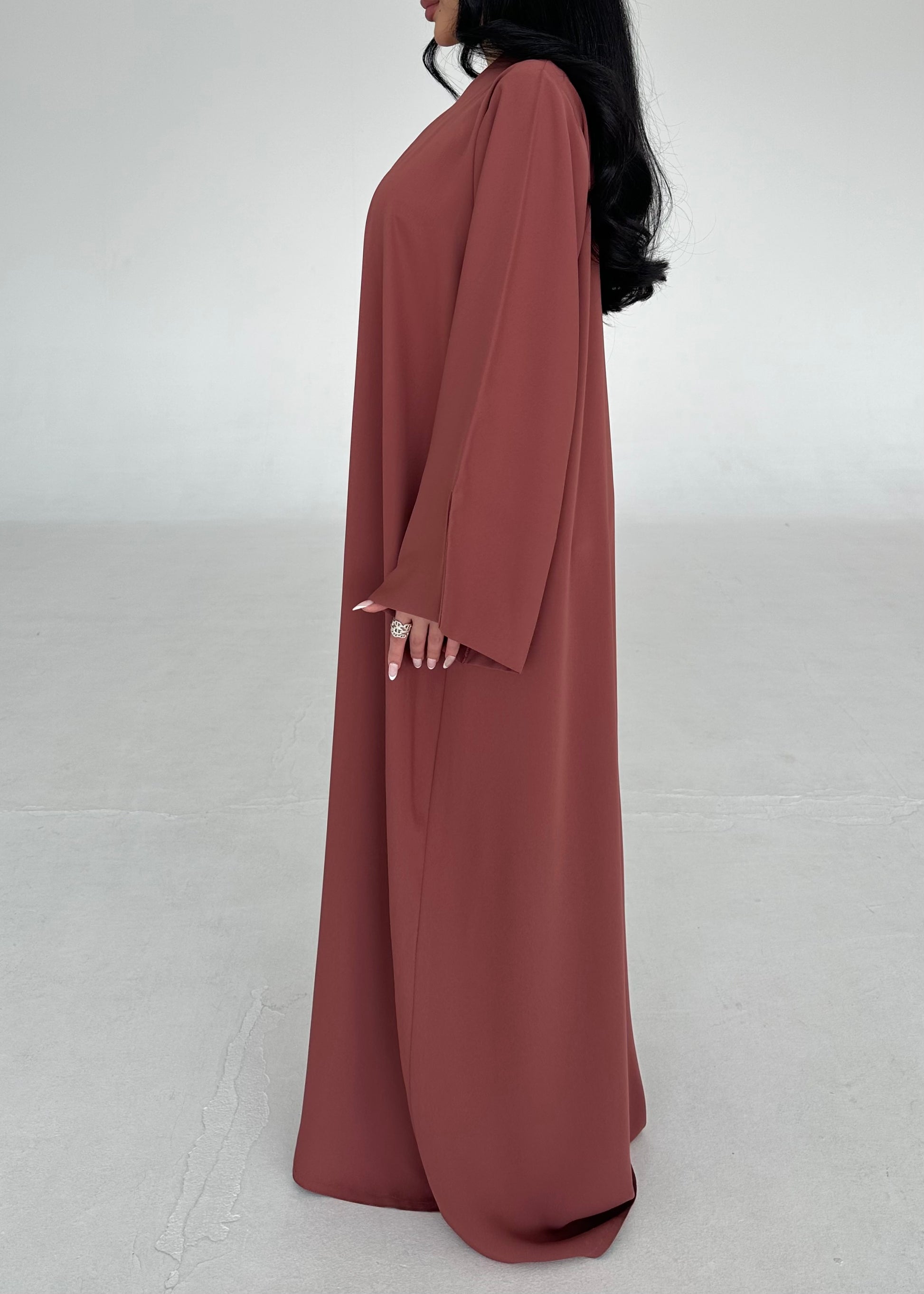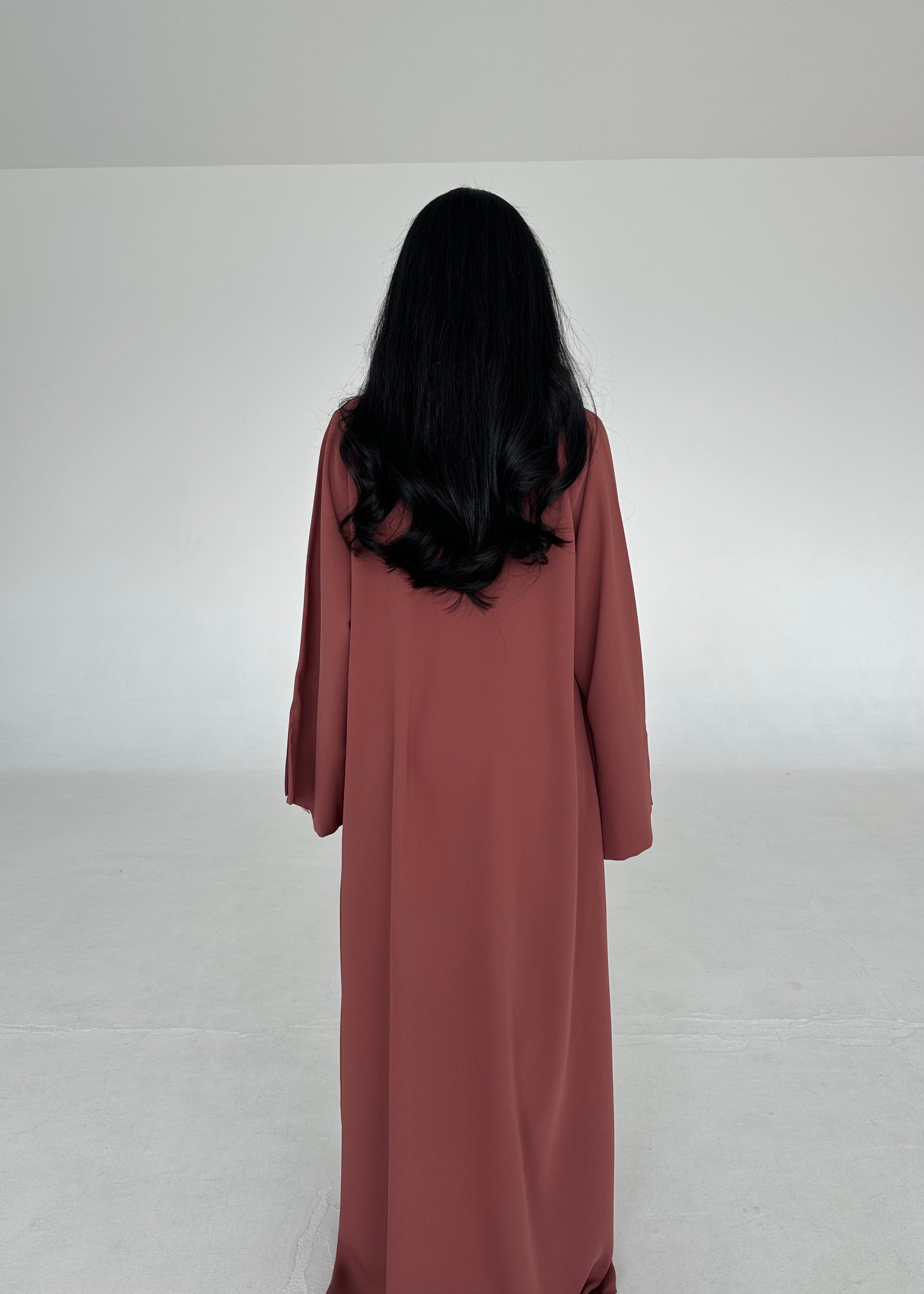 Discover elegance with our Sand Abaya, featuring a warm sand color with hints of orange. This versatile piece is perfect for both daily wear and special occasions.